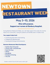 This National Nurses Week, to dine with purpose. Join Newtown Restaurants during Newtown Restaurant Week and help strengthen Nursing Excellence at Danbury Hospital—the nurses who care for our families, friends, and neighbors every day.